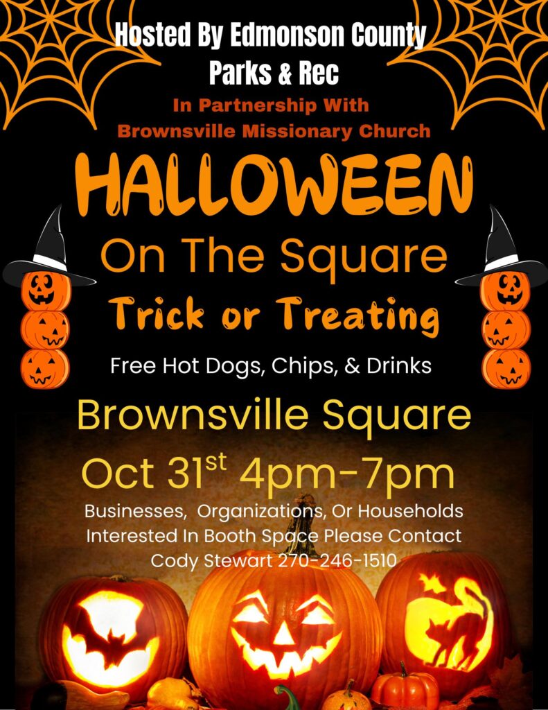 The always fun annual Halloween on the Square for trick-or-treating and FREE hot dogs, chips, and drinks takes place on October 31st from 4 PM – 7 PM at the Brownsville Courthouse Suare. Hopefully all treats and NO tricks!