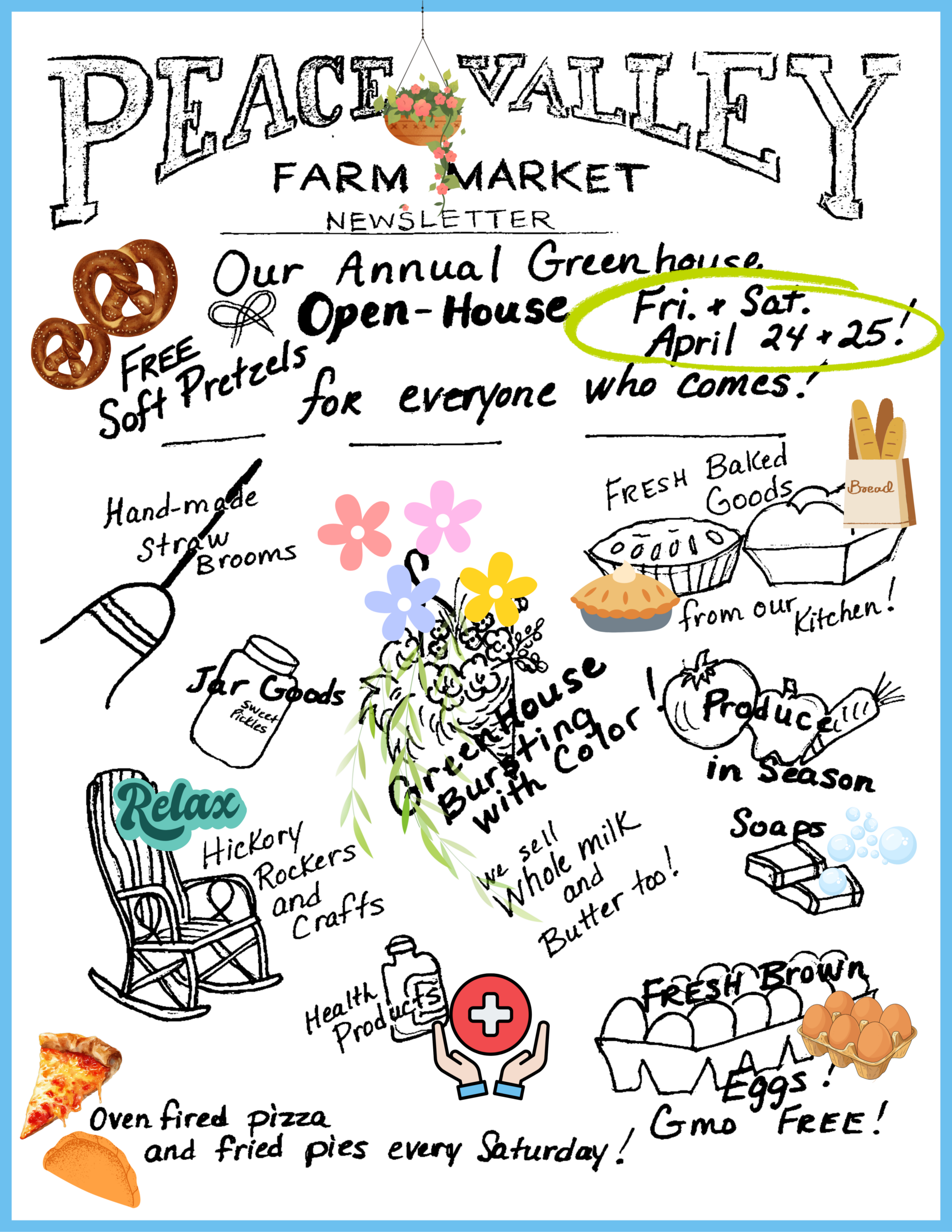 Join Peace Valley for their highly anticipated Annual Open House weekend on Friday, April 24 - Saturday, April 25th where EVERYONE gets a free soft pretzel! Enjoy oven fried pizzas…